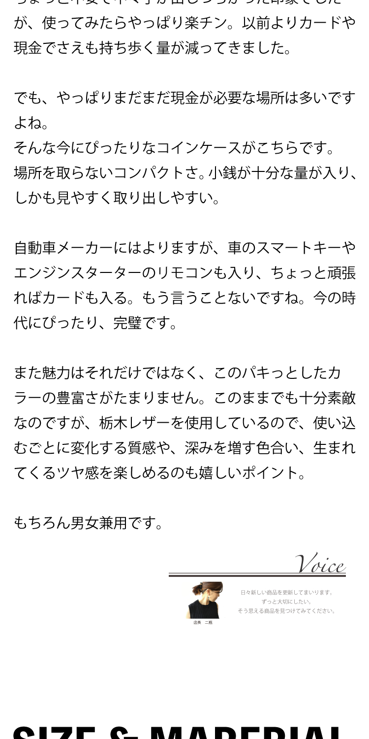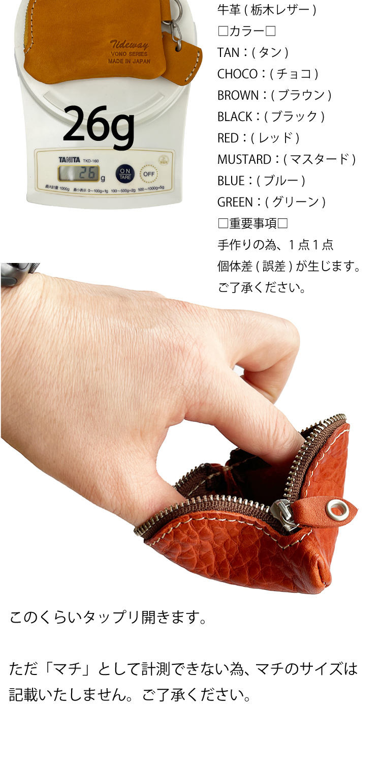また魅力はそれだけではなく、このパキっとしたカラーの豊富さがたまりません。このままでも十分素敵なのですが、栃木レザーを使用しているので、使い込むごとに変化する質感や、深みを増す色合い、生まれてくるツヤ感を楽しめるのも嬉しいポイント。 もちろん男女兼用です。